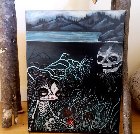 Skeleton Painting Love Story Art Original Painting Cute Dead Nautical Wall Decor 14 X 18 Etsy Uk